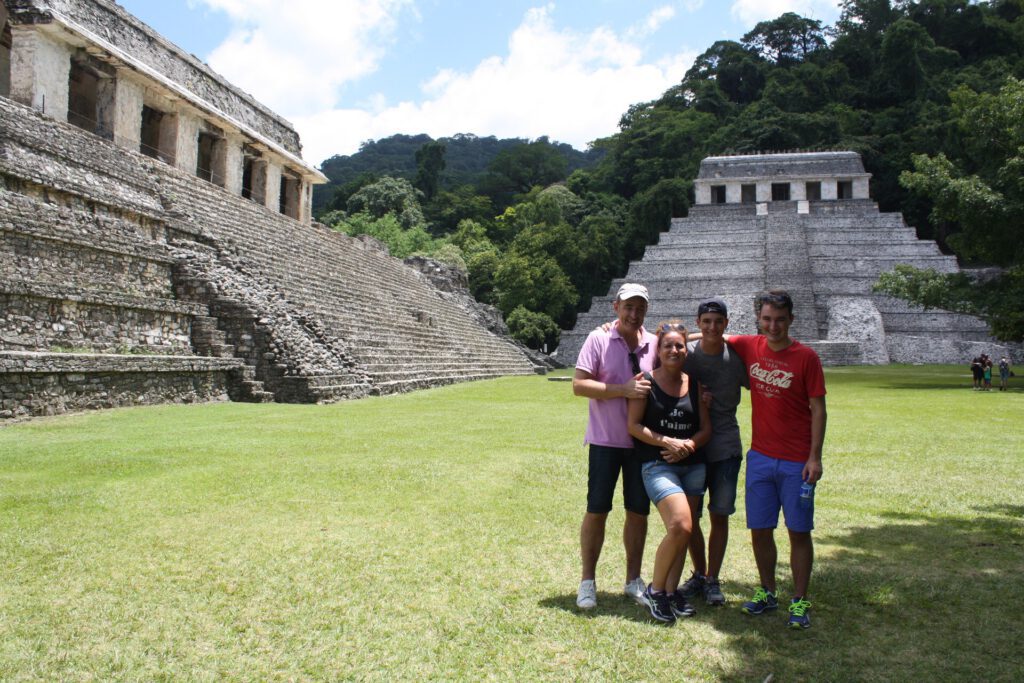 Palenque staat vooral bekend om de ruïnes van het Mayacomplex Palenque. Het is een ontzettend groot complex midden in de jungle van Chiapas waardoor het uitzicht vanuit de ruïnes spectaculairder is dan ooit. Wij beslisten om met een gids – de lieftallige Ignacio – het complex te bezoeken. Hiervoor hadden we natuurlijk al andere Mayacomplexen bezocht tijdens onze rondreis door Mexico, zoals Uxmal en Chitzén Itzá, maar in Palenque leerden we pas écht alles over de geschiedenis van de Maya’s. Ignacio vertelde ons in geur en kleur over het belang van de maïs, de zon en de rest van het heelal.